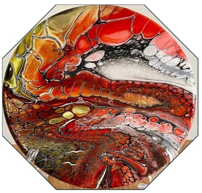 In the centre of the room can be found a collection of circular themed artworks by many of the members.